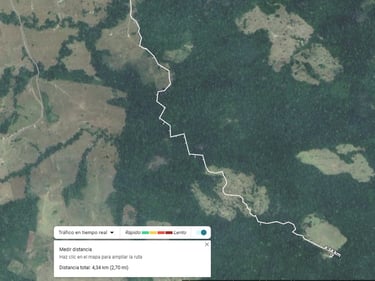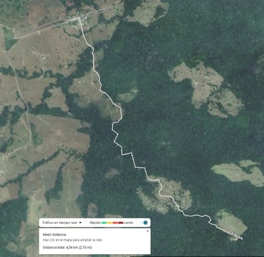 El recorrido inicia con el desplazamiento en vehículo desde la plazoleta de la Gobernación a las 05:00 a. m. hasta el punto de inicio y registro, ubicado en Ecolos, vereda Cerro Azul. Desde este lugar se da comienzo a la caminata, avanzando hasta la finca del señor José Noel, donde se dispone un punto de información. Posteriormente, se reanuda el trayecto a pie con destino a Cerro Pinturas, completando una distancia de 7,7 kilómetros en un solo sentido. El recorrido total es de 15,4 kilómetros (ida y regreso), con un tiempo estimado de caminata de aproximadamente cinco (5) horas.