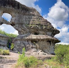 Salida en vehículo des la plazoleta de la Gobernación a las 07:00 AM hasta el sitio conocido como Picapiedra. Los puentes naturales son cavernas insondables bajo lozas que comunican las laderas de un cañón. Esta formación espontánea, en inmediaciones de la serranía de La Lindosa, es un destino recomendado. Los soportes naturales de la estructura representan, además, una experiencia llena de emoción, suspenso y adrenalina. Distancia 13 Kilómetros.